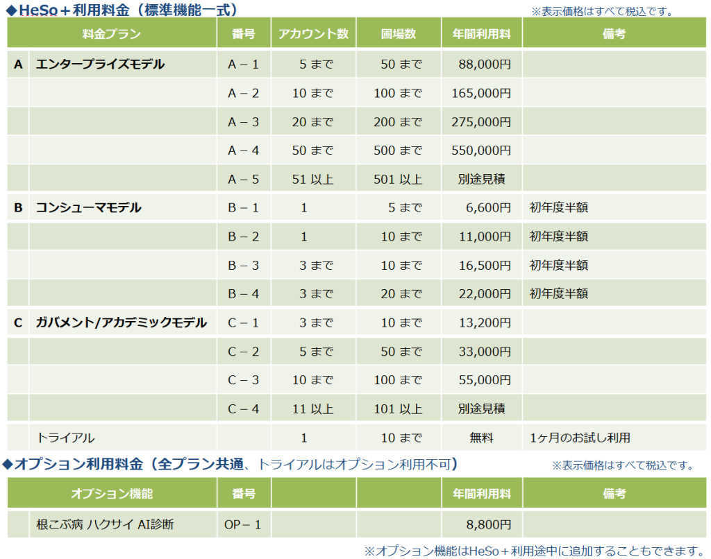HeSo+のすべてのユーザが追加料金なしで利用できます。